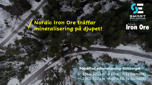 Tidigare under året inleddes ett samarbete, mellan Epiroc, en ledande aktör inom prospekteringsborrning och tillverkning, Smart Exploration Research Center och Nordic Iron Ore AB ("NIO") kring ett djupborrningsprogram för att rikta in sig på lovande seismiska egenskaper och spännande reflektionsseismiska egenskaper som identifierats i Blötbergets undersökningstillstånd och gruvkoncession. Borrningen av ett första hål har nu genomförts och lovande järnmineralisering, i form av hematit, har påträffats.